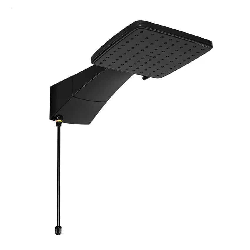 Ducha eletrônica, na cor preta com formato de espalhador da ducha que permite jato de água sobre todo o corpo, cobrindo a extensão de um ombro a outro, deixando o banho muito mais gostoso.